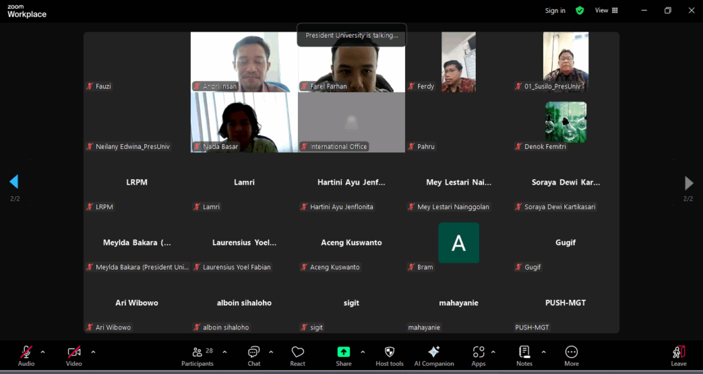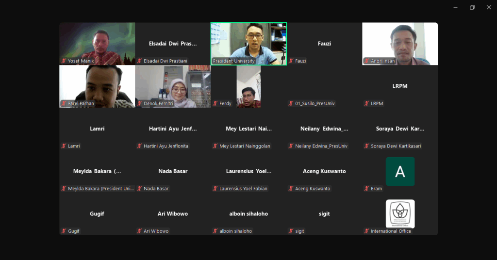 On Friday, 16 May 2025, President University held a training session titled “Sustainability Awareness at President University Batch 4”, attended by over 26 staff, lecturers, and faculty members. The session was conducted online via Zoom from 10.00 to 11.30 WIB.